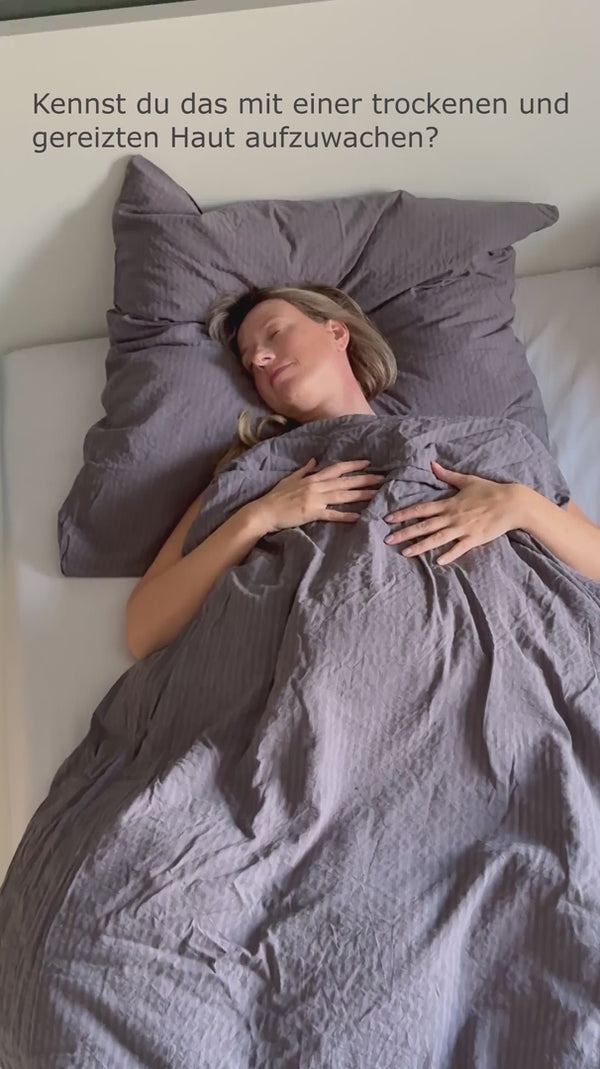 Ganz einfach: Du ziehst sie wie einen Bezug über Matratze, Kissen und Decke. Dann verschließt du den Reißverschluss vollständig. Darüber kommt deine normale Bettwäsche – fertig. Du merkst im Alltag kaum einen Unterschied.